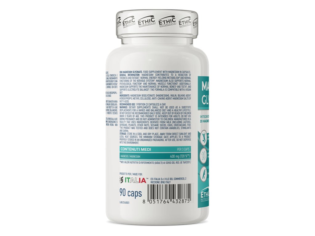 Ethic Nutraceutici Magnesium Glycinate je vysoce kvalitní doplněk stravy v kapslích, který poskytuje hořčík ve formě snadno vstřebatelného bisglycinátu. Produkt byl vytvořen pro fyzicky aktivní jedince, sportovce a každého, kdo chce doplnit svůj denní jídelníček o tento cenný makroživin.