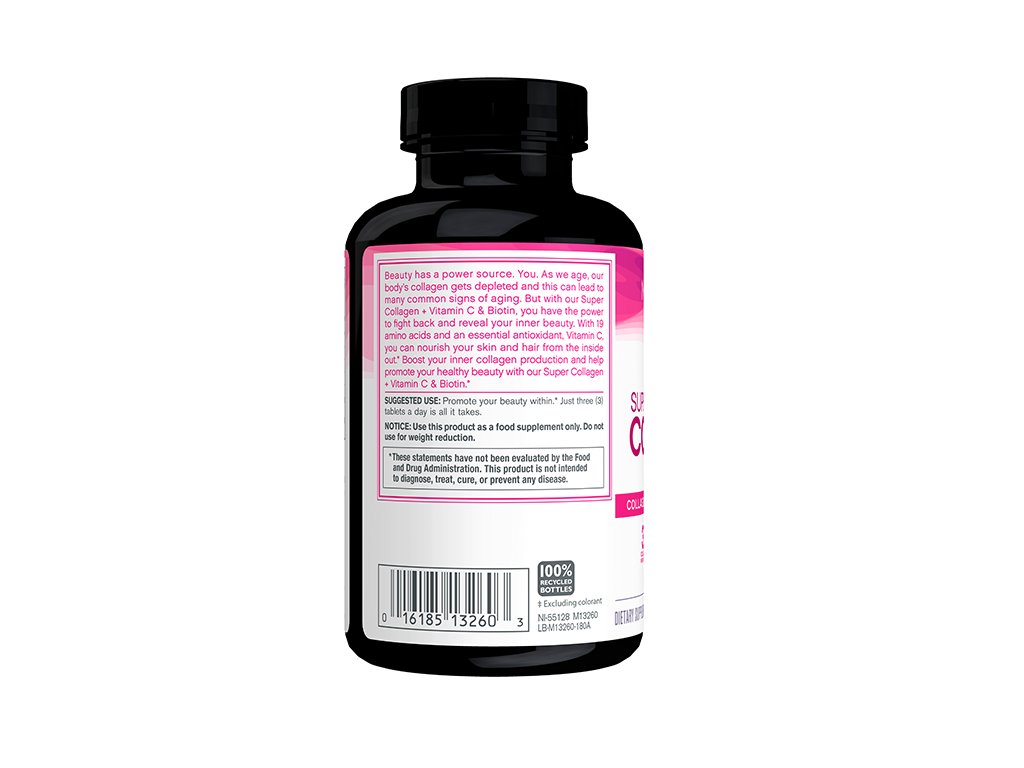 Super kolagen + vitamín C a biotin je vaše odpověď pro kolagen milující pokožku a doplňky zlepšující krásu, to vše ve složení, které lze snadno použít kdekoli. Toto složení 3 v 1 vám poskytuje 3 gramy vysoce vstřebatelných hydrolyzovaných kolagenových peptidů typu 1 a 3, biotin a antioxidační vitamín C pro podporu mladistvé pokožky a zdravých vlasů a nehtů – to vše v praktických tabletách. Je to prostě úžasný doplněk vaší každodenní rutiny, ať už jste doma nebo na cestách.