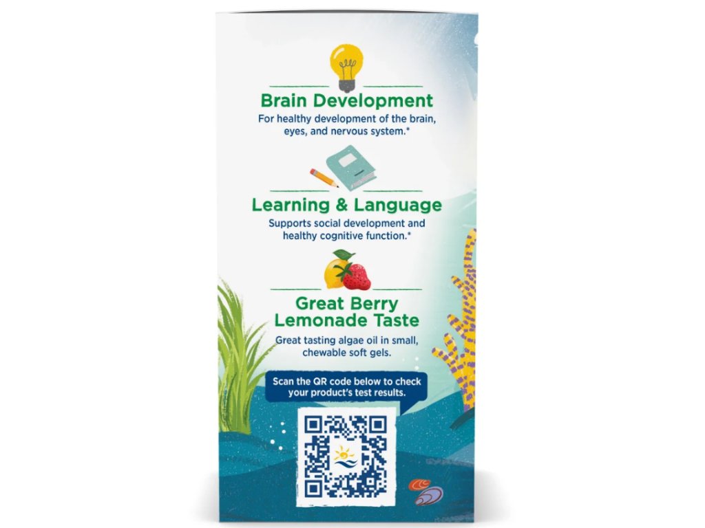 - Poskytuje zdravou denní porci mořské omega-3 DHA z mikrořas na podporu vývoje dítěte a zdraví imunitního systému.