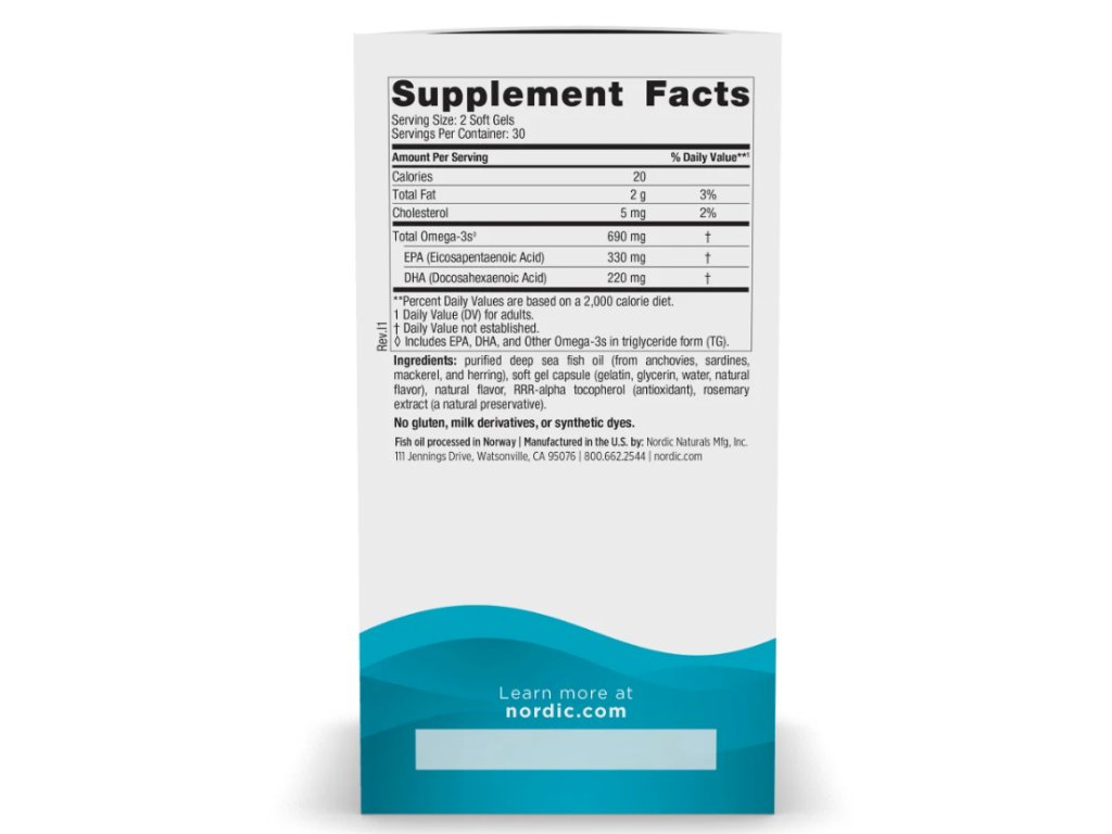 Všechny produkty z rybího oleje Nordic Naturals jsou nabízeny v molekulární formě triglyceridů – ve formě, která se přirozeně vyskytuje v rybách a ve formě, kterou vaše tělo nejsnáze vstřebává. Všechny produkty od společnosti Nordic Naturals jsou bez GMO (Geneticky Modifikovaný Organismus) a jsou testovány třetí stranou, což překračuje nejpřísnější mezinárodní standardy pro čistotu a svěžest. Rybí oleje Nordic Naturals mají certifikaci Friend of the Sea (FOS) a jsou vyráběny udržitelným způsobem v zařízeních s nulovým odpadem.