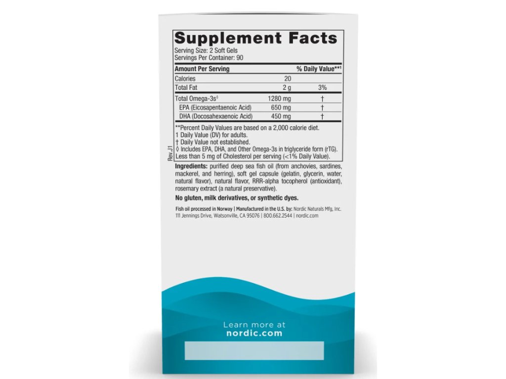 Všechny produkty z rybího oleje Nordic Naturals jsou nabízeny v molekulární formě triglyceridů – ve formě, která se přirozeně vyskytuje v rybách a ve formě, kterou vaše tělo nejsnáze vstřebává. Všechny produkty od společnosti Nordic Naturals jsou bez GMO (Geneticky Modifikovaný Organismus) a jsou testovány třetí stranou, což překračuje nejpřísnější mezinárodní standardy pro čistotu a svěžest. Rybí oleje Nordic Naturals mají certifikaci Friend of the Sea (FOS) a jsou vyráběny udržitelným způsobem v zařízeních s nulovým odpadem.