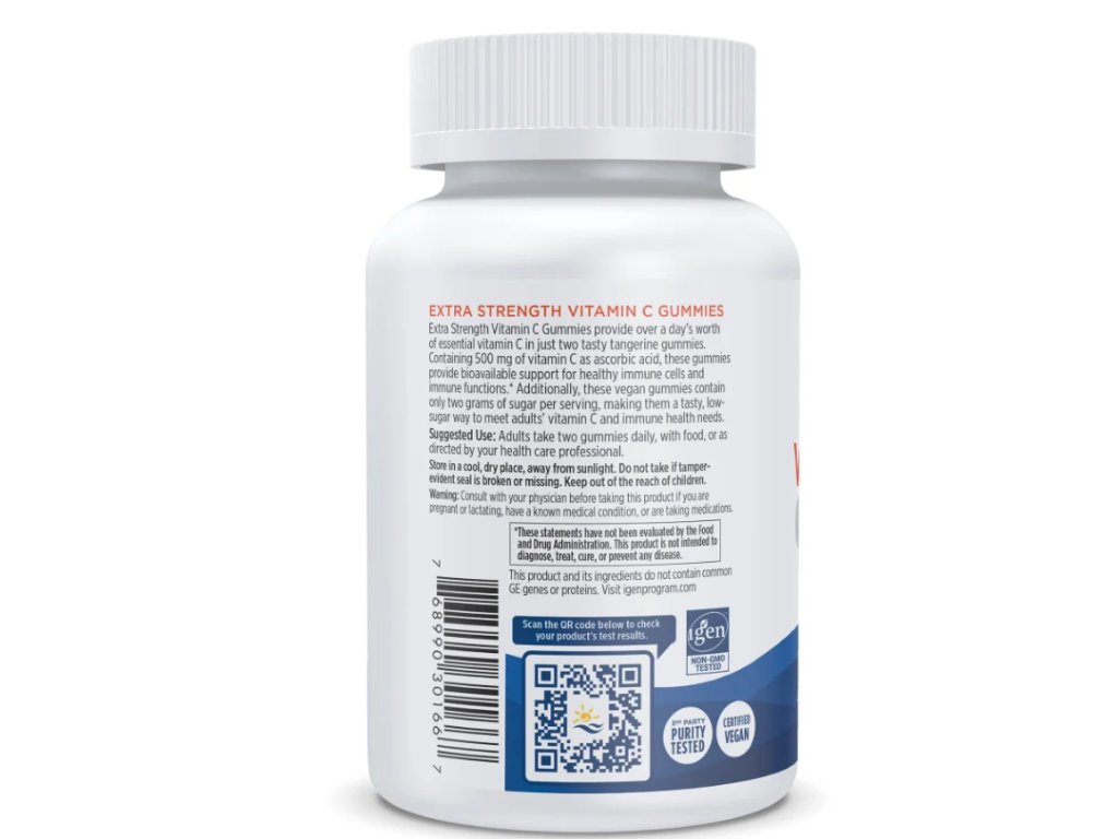 Vitamin C je nezbytný pro zdravou imunitní funkci, antioxidační ochranu a produkci kolagenu.* Výzkumy však ukazují, že mnoho Američanů nemá dostatek ve stravě. Naše extra silné gumové gumy s vitamínem C poskytují více než jeden den vitamínu C ve dvou chutných mandarinkových gumách s nízkým obsahem cukru. Získání denní dávky vitamínu C nebylo nikdy jednodušší.