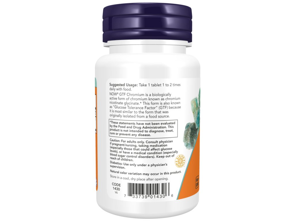 Now® GTF Chromium je biologicky aktivní forma chelatovaného chromu známého jako Chromium Chelavite®. Tato forma chromu je také známa jako "faktor tolerance glukózy" (GTF). Podporuje zdravý metabolismus glukózy.
