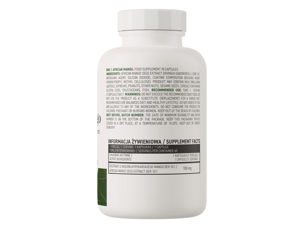 Doplněk stravy ve veganských kapslích s extraktem ze semen afrického manga (Irvingia gabonensis L.) DER 10:1. Podporuje také odbourávání triglyceridů a biochemické procesy spojené se snižováním podílu lipoproteinů s nízkou hustotou, oblíbeného „špatného cholesterolu“ LDL.