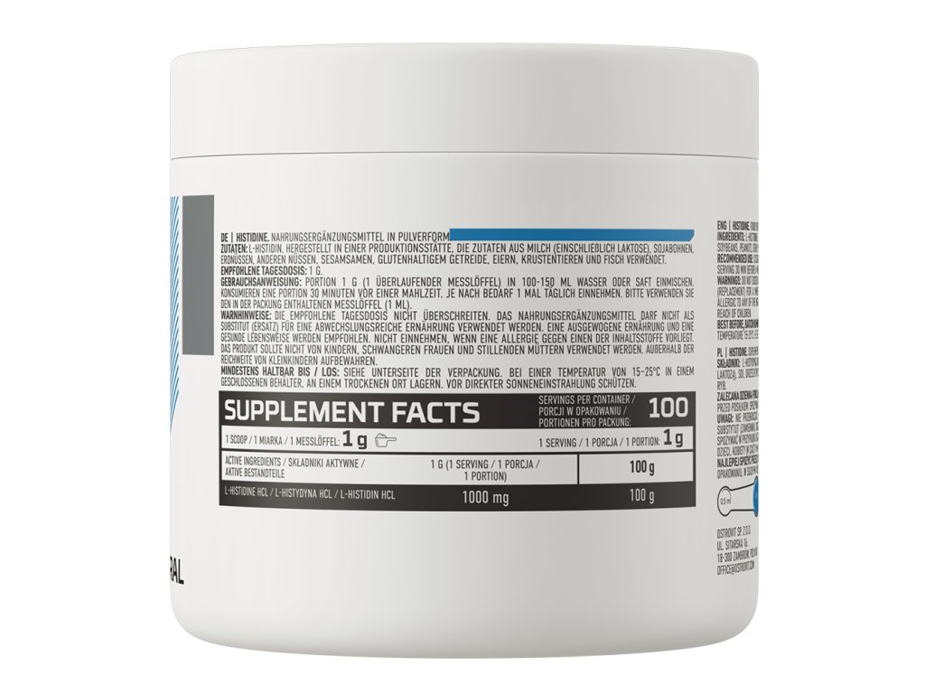- droj L-histidinu - jedna dávka doplňku stravy dodá tělu 1000 mg aminokyseliny.