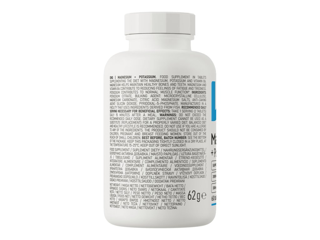 Hořčík obsažený v přípravku pomáhá při správném fungování svalů a při udržování rovnováhy elektrolytů a pomáhá udržovat zdravé kosti a zuby. Hořčík a vitamín B6 přispívají k udržení správného energetického metabolismu a pomáhají při správném fungování nervového systému. Tyto složky navíc přispívají ke snížení míry únavy a vyčerpání a pomáhají udržovat normální psychické funkce.