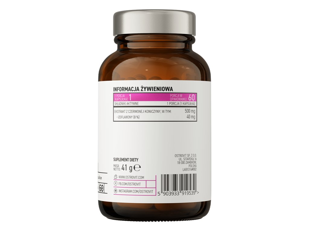 Jetel červený , nazývaný také jetel luční, je oblíbená rostlina, která je často považována za plevel. Roste na loukách, pastvinách a městských trávnících téměř v celé Evropě, i když bylinu najdeme i na jiných kontinentech. Je to vytrvalá, zimovzdorná a silně zakořeněná rostlina, která může dorůst až 60 cm výšky. Květy jetele červeného se vyznačují množstvím cenných sloučenin. Rostlina obsahuje vitamíny, jako je vitamín A, C a vitamíny B, stejně jako minerální látky, včetně: hořčík , vápník, draslík a selen. Červený jetel také dodává tělu antokyany a fenolové kyseliny a také malé množství esenciálních olejů. Za cennou sloučeninu nacházející se v rostlině jsou považovány isoflavony, tedy sloučeniny strukturně podobné estrogenům, jejichž obsah je standardizován v rostlinném extraktu použitém v přípravku OstroVit.