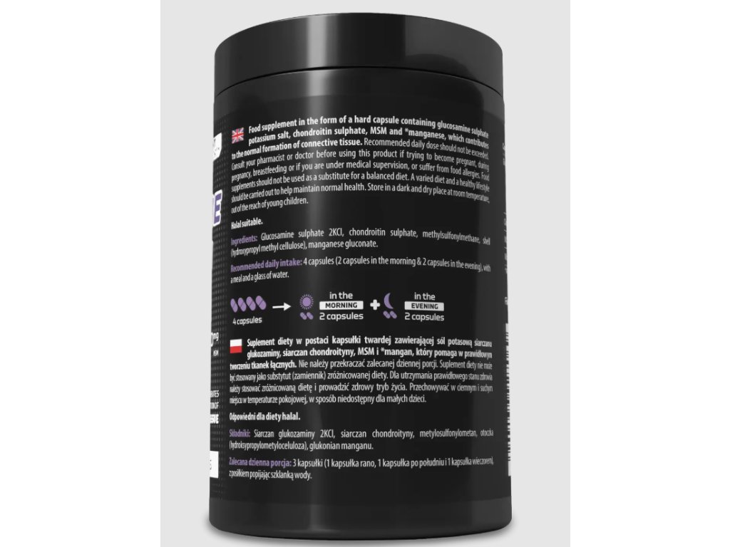 - Komplexní složení aktivních složek: Obsahuje glukosamin sulfát (1270 mg), chondroitin sulfát (800 mg), MSM - methylsulfonylmethan (600 mg) a mangan (1 mg).